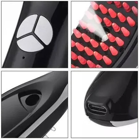 Combata a queda de cabelo e conquiste fios mais fortes, volumosos e saudáveis com a escova que une cromoterapia (LED vermelho e azul), massagem vibratória e difusor de óleos essenciais em um único dispositivo.