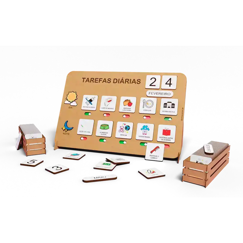 Organização clara – ícones simples ajudam a criança a visualizar e seguir a rotina facilmente.